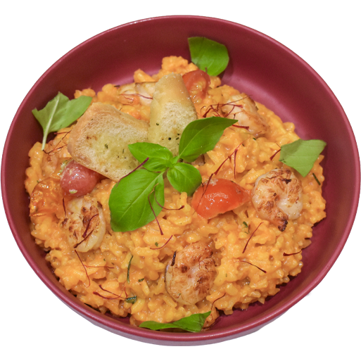 Classic Italian risotto topped with sautéed shrimp.